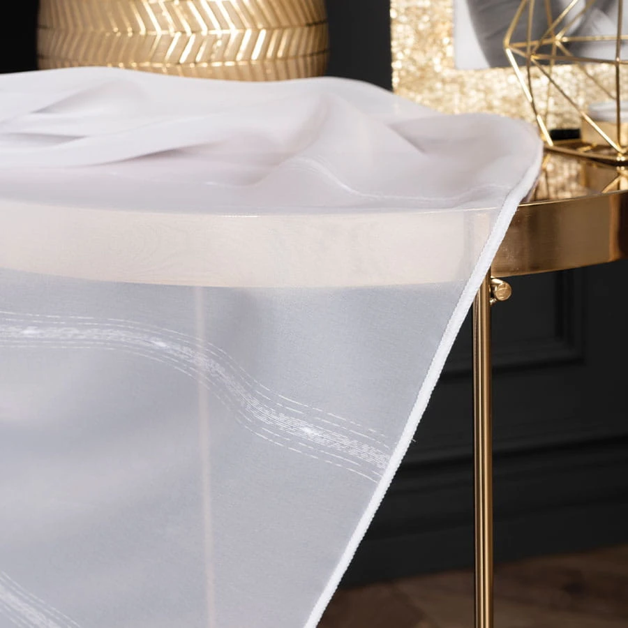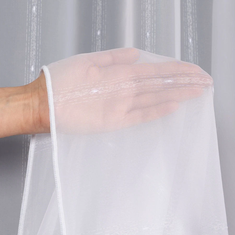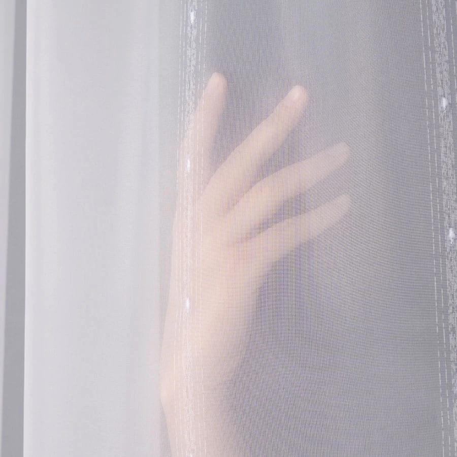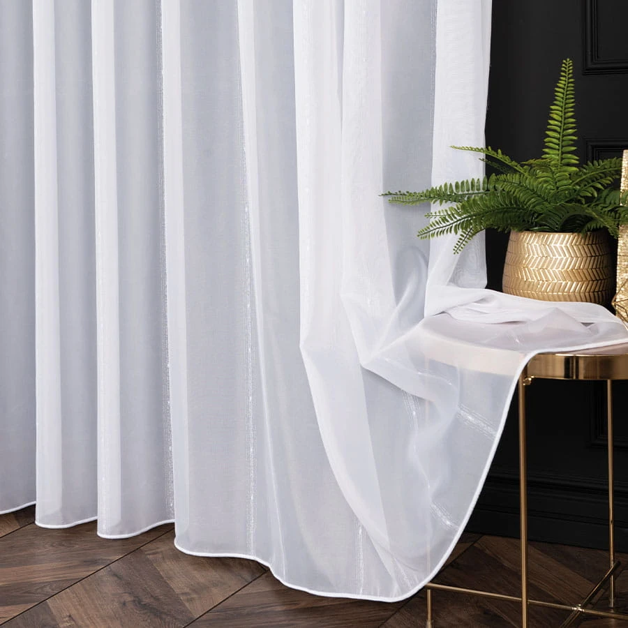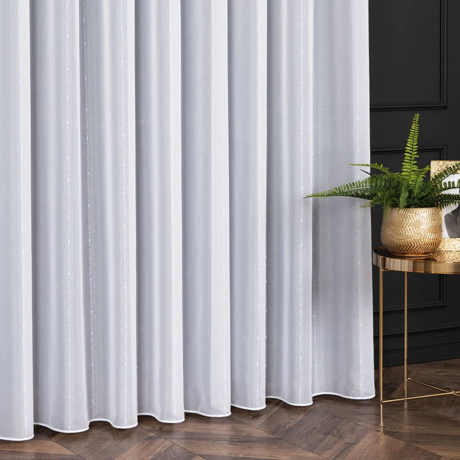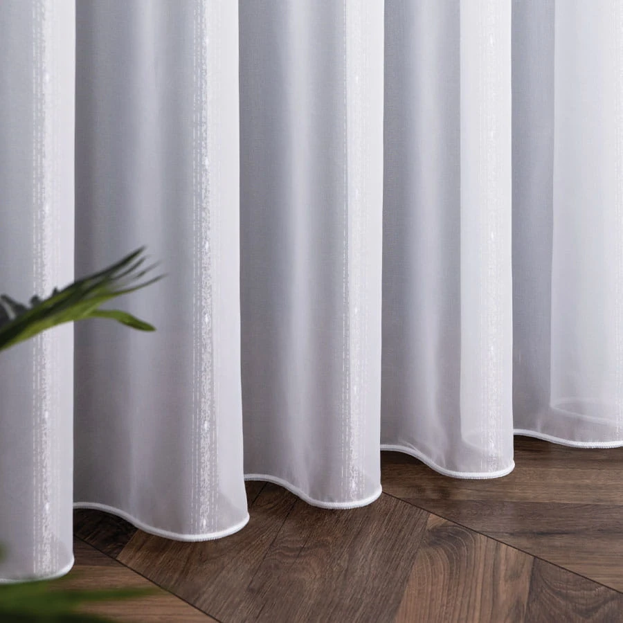 Gładka firana z delikatnym zdobieniem wykończona ołowianką