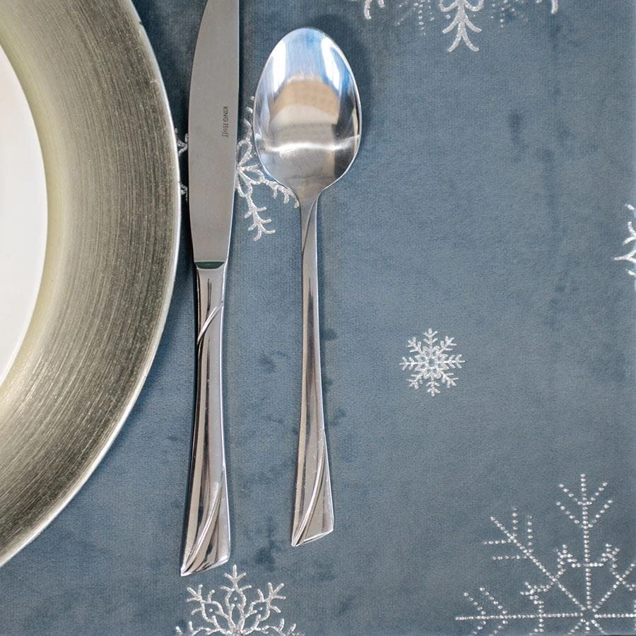 ŚNIEŻKI Bieżnik wodoodporny VELVET, 40x160cm, kolor jasny niebieski ze srebrnym zdobieniem