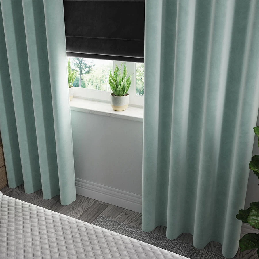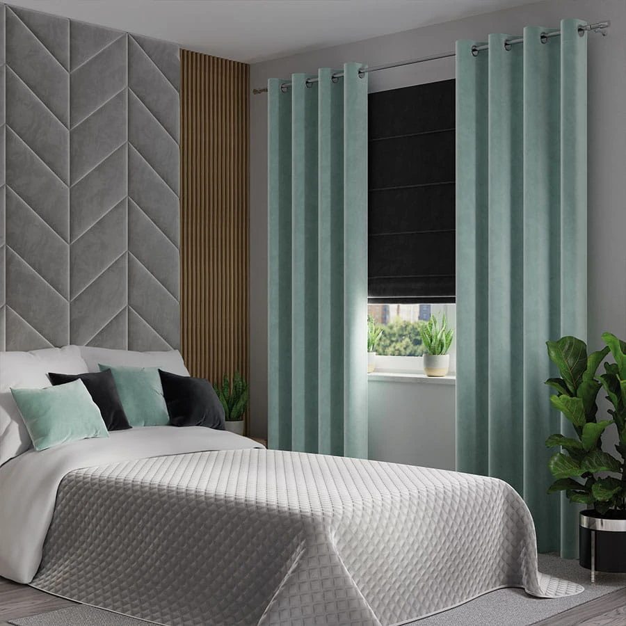 VELVI Zasłona gotowa na przelotkach, szerokość 140 x wysokość 230cm, kolor miętowy