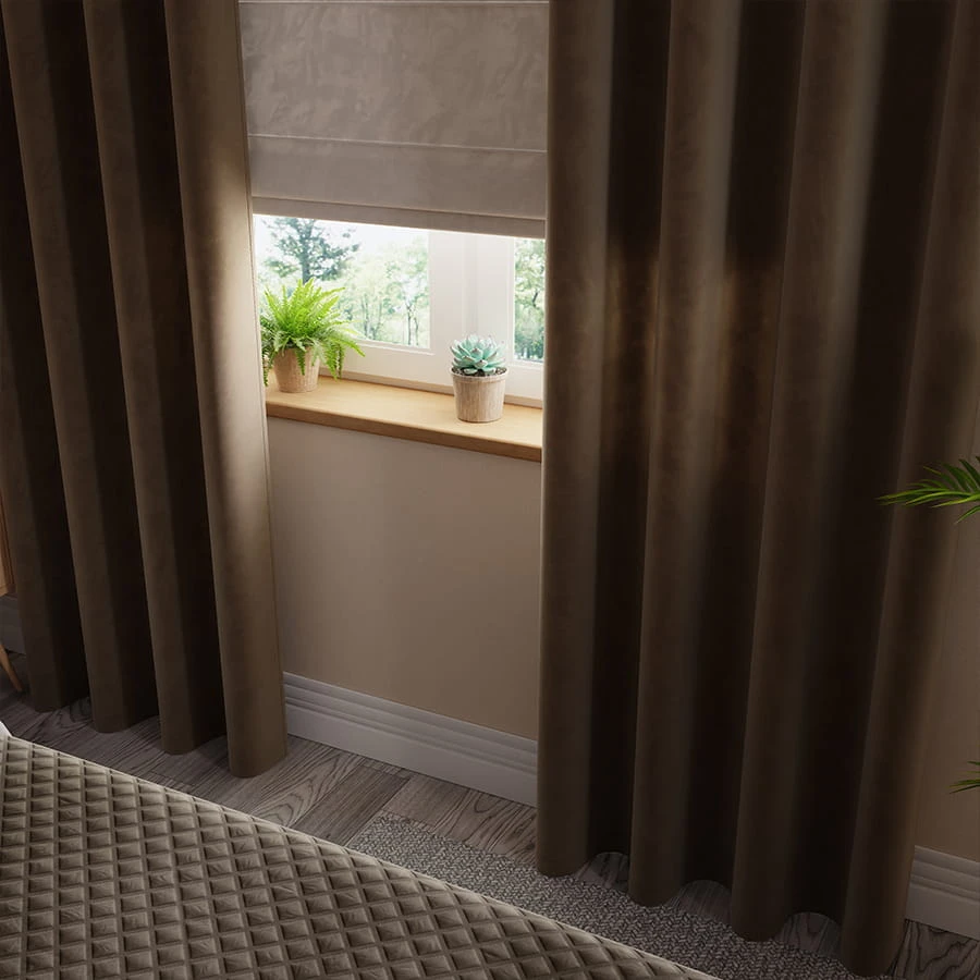 VELVI Zasłona gotowa na przelotkach, szerokość 140 x wysokość 250cm, kolor 002 brązowy VELVI0/ZGP/002/140250/1