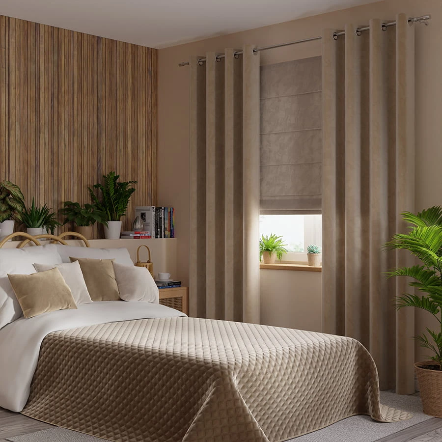 VELVI Zasłona gotowa na przelotkach, szerokość 140 x wysokość 260cm, kolor 001 ciemny beżowy VELVI0/ZGP/001/140260/1