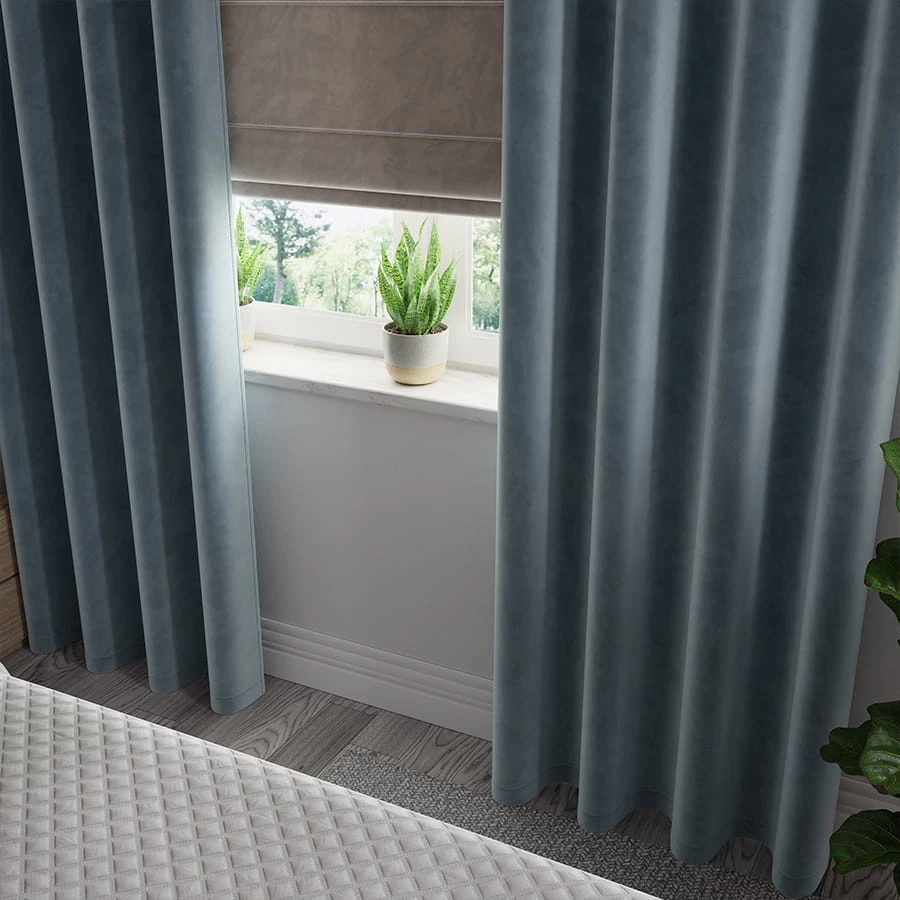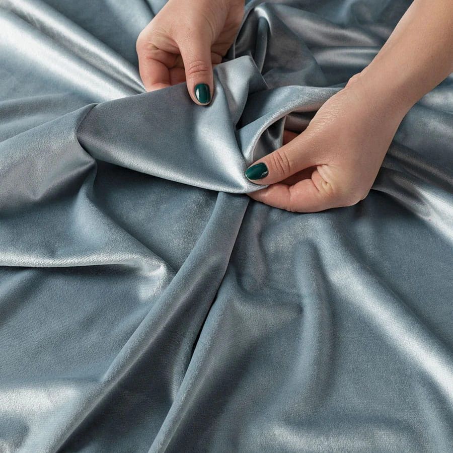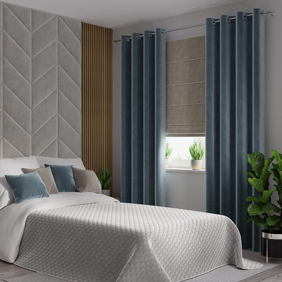Zasłona gotowa na przelotkach z bardzo miłej w dotyku tkaniny typu Velvet.