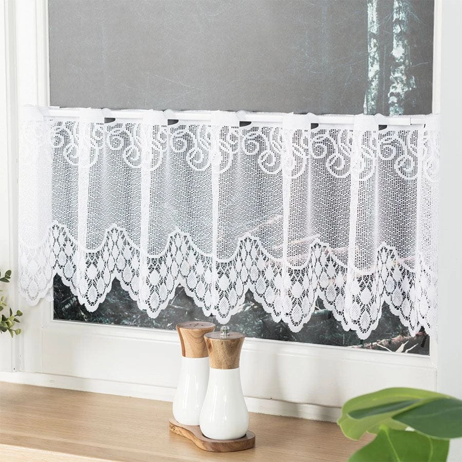 VIOLETTA Zazdrostka żakardowa ze wzorem pasowym, wysokość 30cm, kolor biały