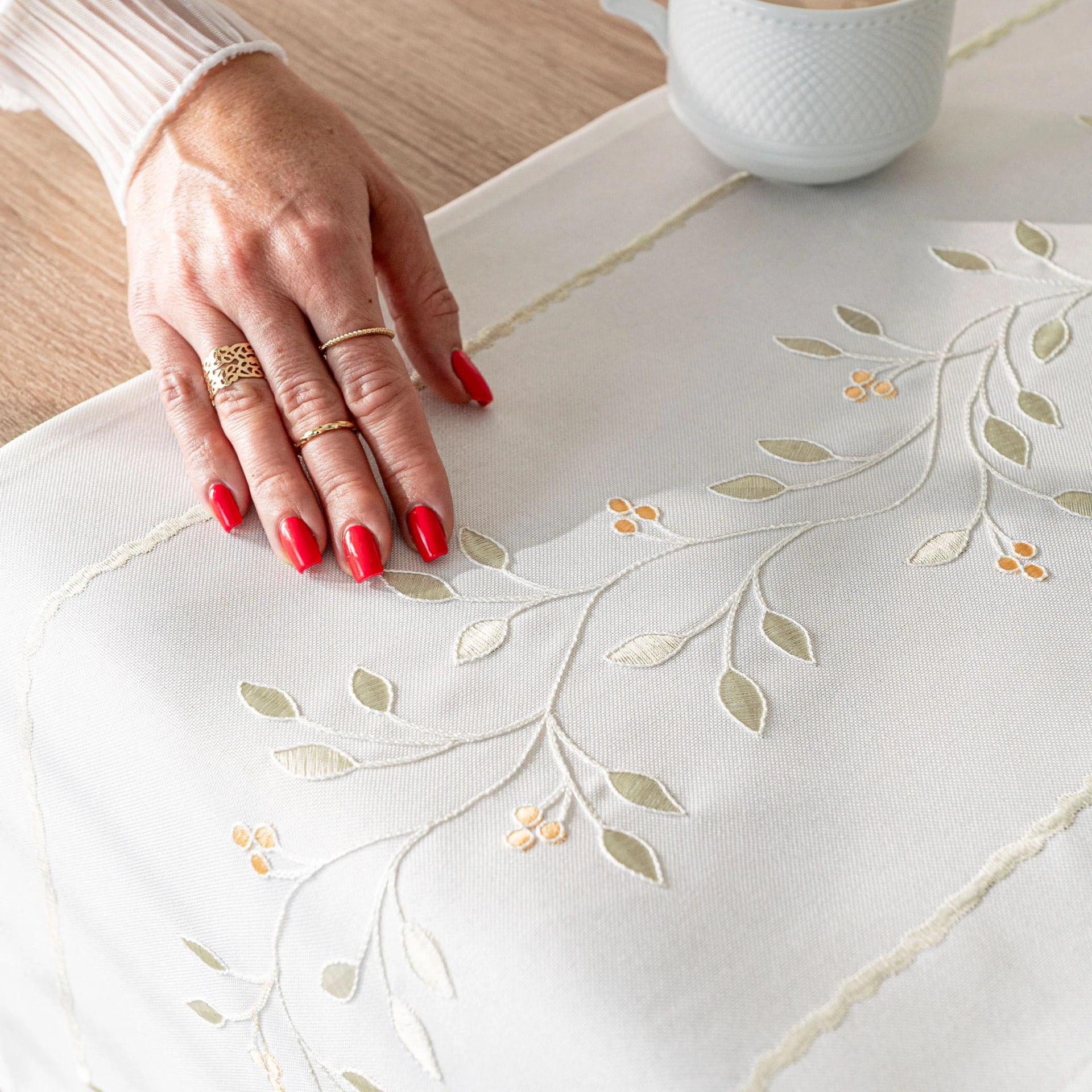 ZIELONA MELODIA Bieżnik z haftem, szerokość 38cm x wysokość 140cm, kolor biały