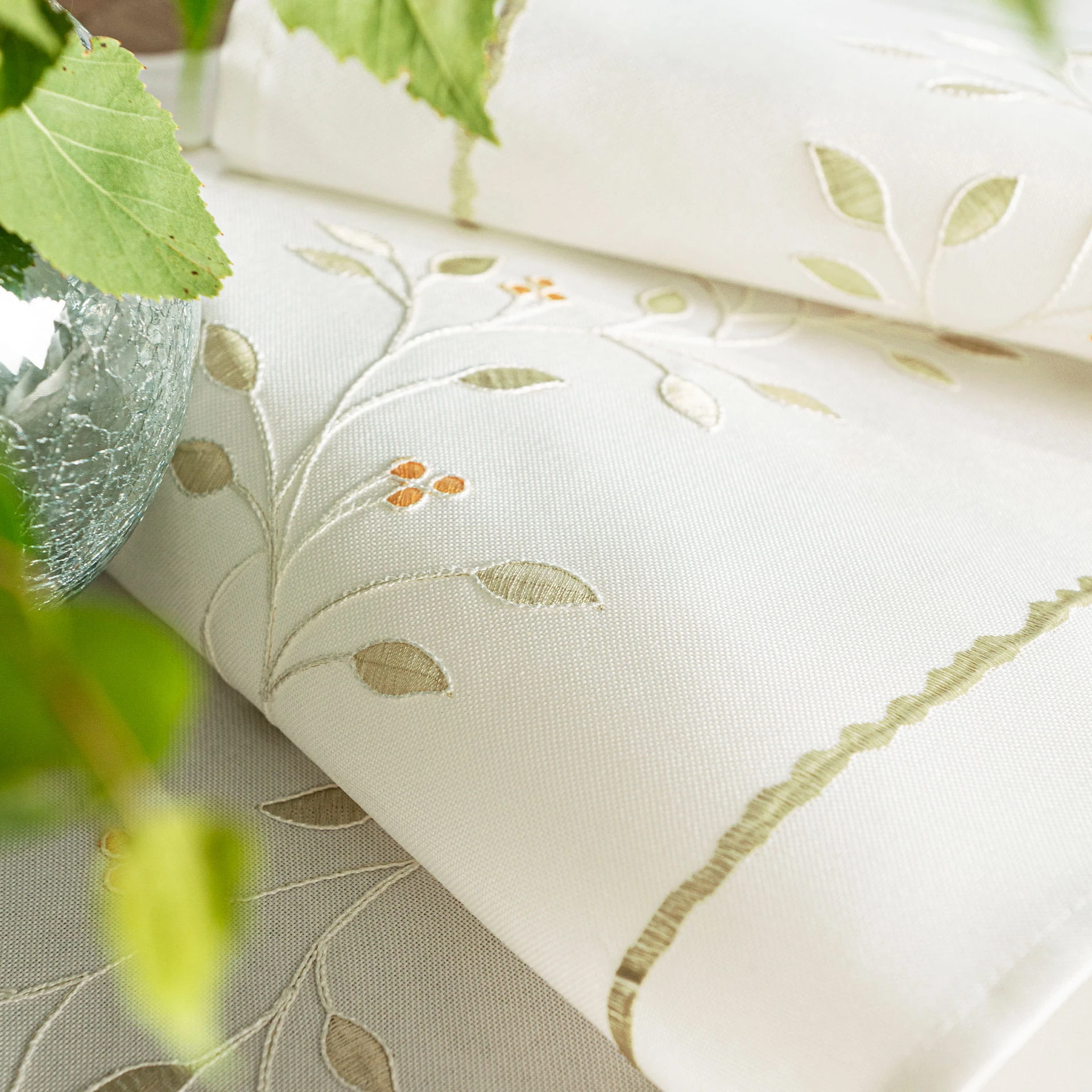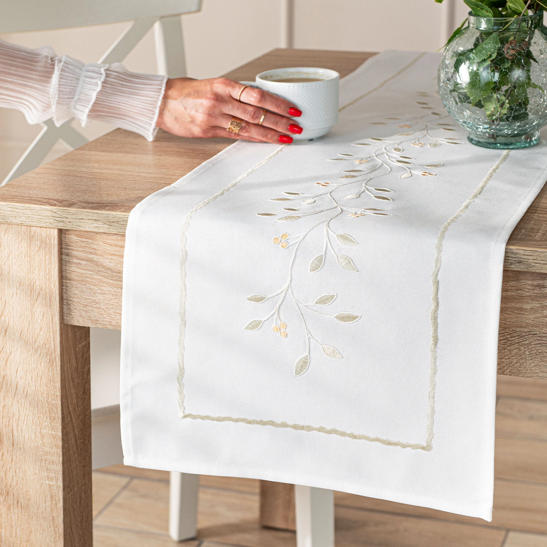 ZIELONA MELODIA Bieżnik z haftem, szerokość 38cm x wysokość 160cm, kolor biały